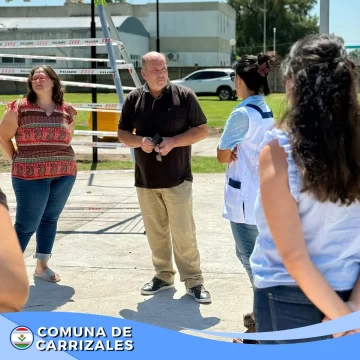 Aprovechando la jornada de entrega, las directoras de las escuelas y los miembros de las cooperadoras escolares participaron en un recorrido para conocer los avances del nuevo Playón Deportivo, una obra que se encuentra en su fase final y que muy pronto estará habilitada para que los alumnos puedan disfrutar de un espacio de recreación y deportes.