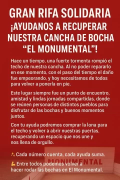 Cada número cuenta, cada ayuda suma. Entre todos pueden volver a hacer rodar las bochas en El Monumental.