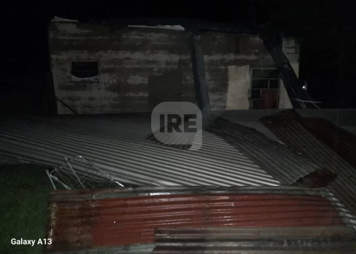 En diálogo con IRÉ, todavía conmocionada por lo vivido, Micaela narró la madrugada de terror que pasaron en su casa de calle Tucumán, entre Alsina y Urquiza: “Estábamos todos durmiendo y de repente escuchamos un ruido fuerte, como una explosión. Nos voló el techo entero, no fue chapa por chapa, lo arrancó limpio. Era de chapa y machimbre, Ahí empezó a filtrar el agua, a llover por todos lados”.