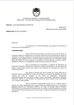 El gobierno de la provincia de Santa Fe autorizó un aumento en las tarifas del transporte interurbano de pasajeros, que comenzará a regir en las próximas semanas. Según un decreto publicado este miércoles, la suba será del 23,5% en promedio, lo que afectará a los usuarios de colectivos que viajan entre diferentes localidades de la provincia. Esta medida, que lleva la firma del gobernador Maximiliano Pullaro y el ministro de Transporte y Logística, Gustavo Puccini, responde a un conjunto de factores económicos que, según la administración santafesina, justifican este ajuste.