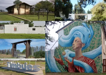 Pero el diseño no solo se expresa en grandes ciudades o proyectos internacionales. También forma parte de la vida cotidiana en cada comunidad. En la región, puede reconocerse en elementos concretos como los carteles ferroviarios históricos de Maciel, Oliveros, Díaz y Serodino; en los escudos comunales y emblemas de clubes e instituciones; en los carteles de acceso e identidad visual de localidades como Pueblo Andino, Timbúes o Puerto Gaboto; en los murales de La Boca de Monje; y en la arquitectura de iglesias, comunas y edificios patrimoniales que forman parte del paisaje urbano de pueblos como Barrancas, Monje o Carrizales. También el diseño de plazas y espacios públicos puede entenderse como una expresión de organización e identidad comunitaria.