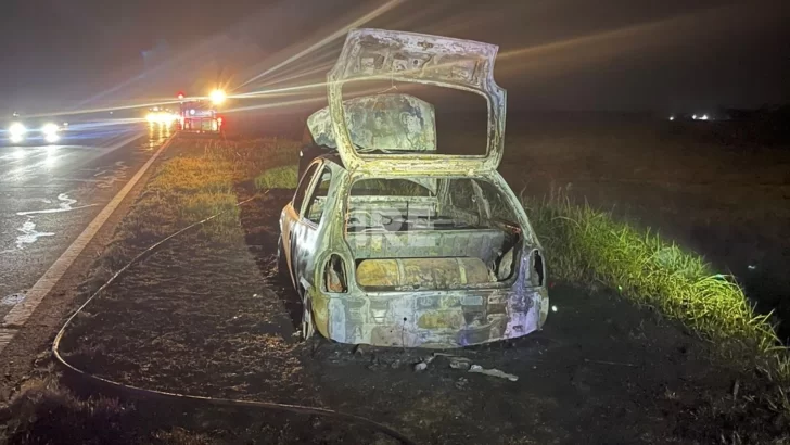 Totoras: Un automóvil quedó destruido tras un incendio en la Ruta 91