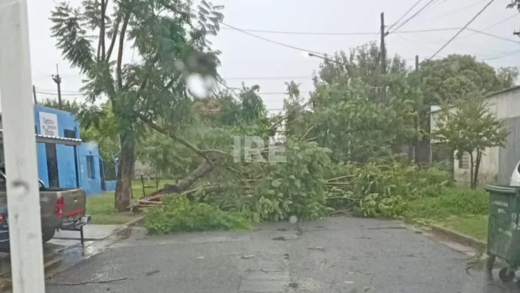 En medio del temporal un árbol cayó, tumbó otro y dañó a dos casas en Oliveros